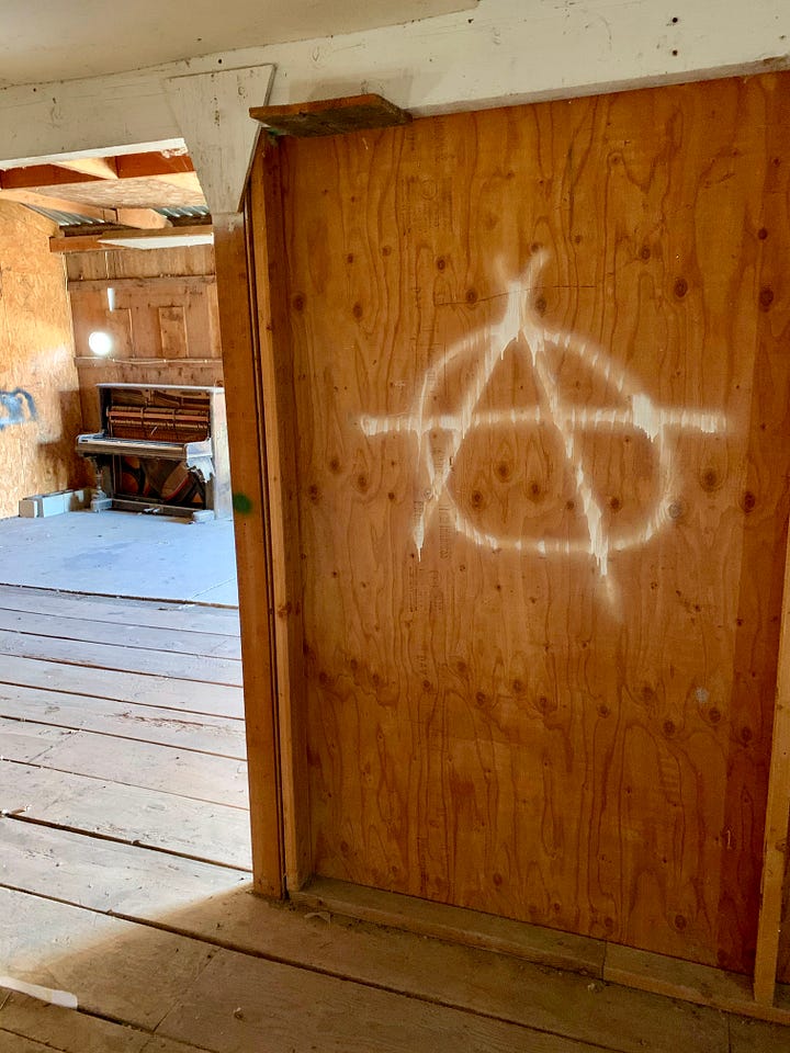 When we first explored its musty gloom, we found evidence of uses past - a weird eye wash station; a spooky loft with a gallery of subversive graffiti; and a saloon-era piano left to crumble in a side room.