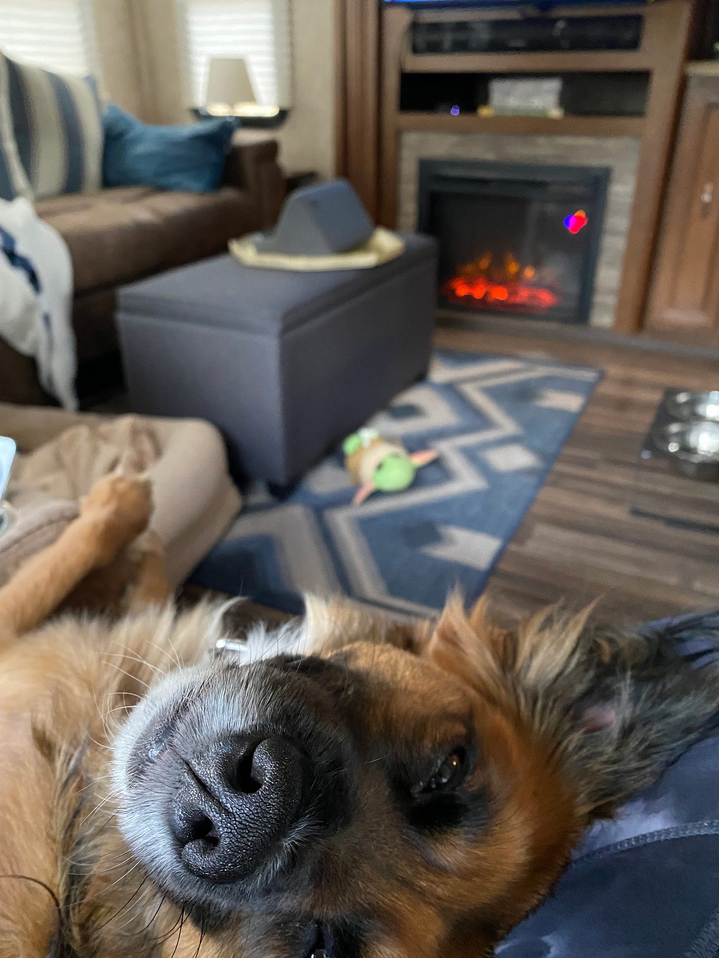 In the meantime, enjoy this image of Charles relaxing fireside in the “coach.”