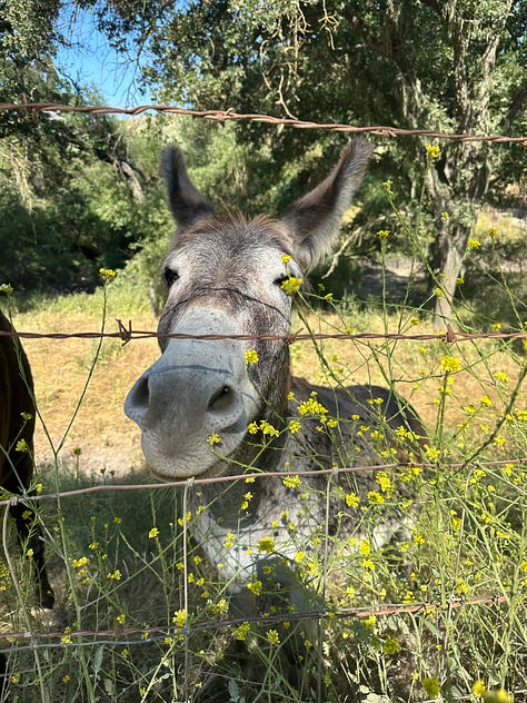 As we transition to the warm and dry season, the trees are still leafy green, and the golden hills are dotted with clumps of bright yellow mustard and charming, but deadly hemlock.