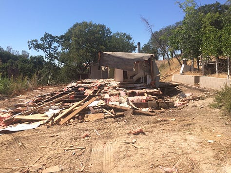We discussed rehabbing one of the manufactured homes, affectionately coined the meth den, but after traipsing through it on multiple occasions, decided it was wayyyy to murder-y and rodent-y to make it habitable. So we went about hiring someone who would take on the onerous task of demolishing it. When I tell you the multiple tens of thousands of dollars these people were bidding for demo…I’m convinced the head of every one of these companies has a secret offshore account and/or spends the season in Gstaad. Lucky for us, our wonderful, salt of the earth neighbor, Neal - the alleged first resident of our dirt road - said he would do it for a fraction of the price. We joke that Neal has become the Mr. Haney (without the treachery and unscrupulousness) to our Lisa and Oliver Wendell Douglas, popping up with either the perfect service or recommendation we didn’t even know we needed, until we did. Art Imitating Life